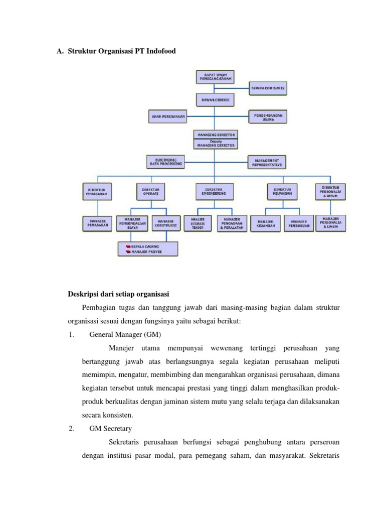 Struktur Organisasi Pt Indofood Dan Tugasnya Berbagai Struktur