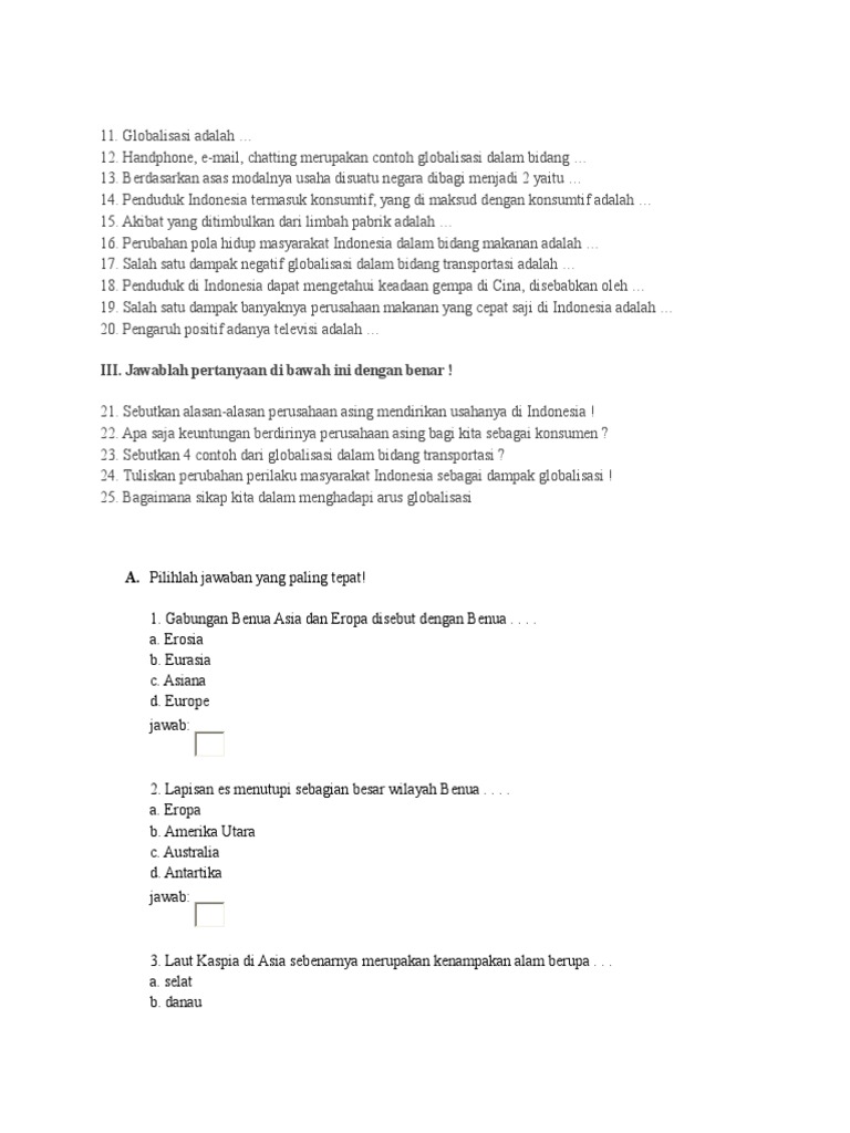 Soal Ulangan Harian Kelas 6 Sd Terbaru Uh3 Ips Kelas Vi